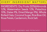 Pink City Granola is a rich, flavourful granola. It is inspired by Indian desserts and has the perfect balance of rose-pistachios-cardamom.  It has 52% nuts, seeds, and dried fruit that deliciously complement each other.  So what if we can’t have desserts as much as we want, we can always enjoy the flavour.