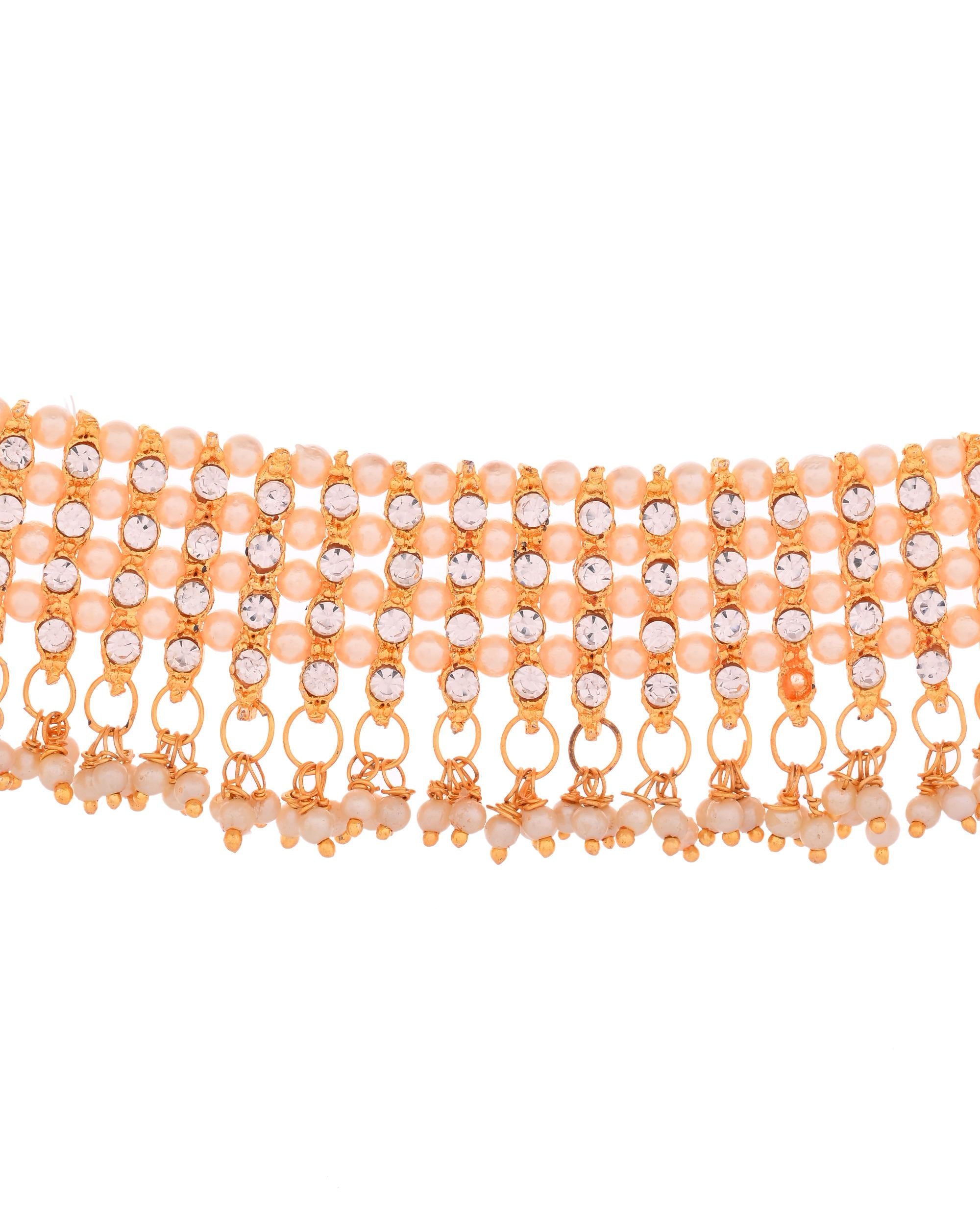 Add a regal touch to your attire with this Gold Plated Artificial Beads and Stone Studded Necklace and Earrings Set. Featuring a rich combination of vibrant beads and shimmering stones, this set offers a perfect blend of tradition and elegance. Ideal for weddings, festivals, and special occasions, it brings timeless charm and sophistication to any ensemble.Legal Disclaimer :Product color may slightly vary due to photographic lighting sources or your monitor settings.