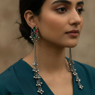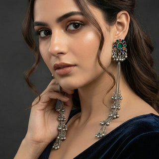 JS Fashion Oxidized Silver Long Multicolor Ghungroo Earrings for Women & Girls