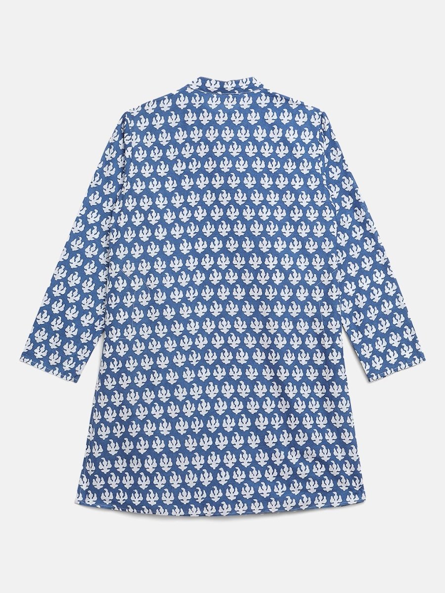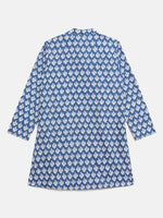 Ahalyaa Boys Blue Pure Cotton Porcian Print Kids Kurta Churidar SetPut forward your son's best traditional look by choosing this kurta Churidar set...
