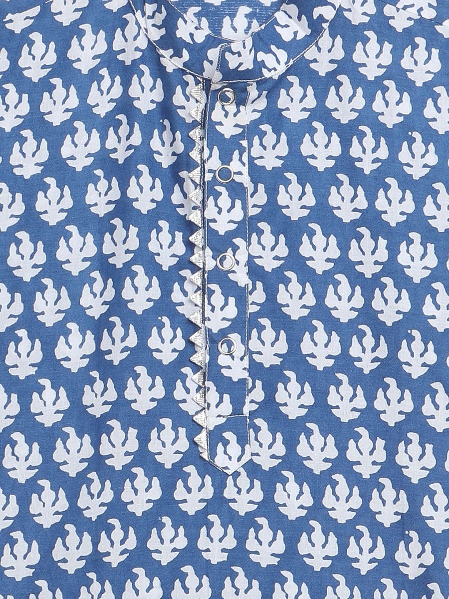 Ahalyaa Boys Blue Pure Cotton Porcian Print Kids Kurta Churidar Set