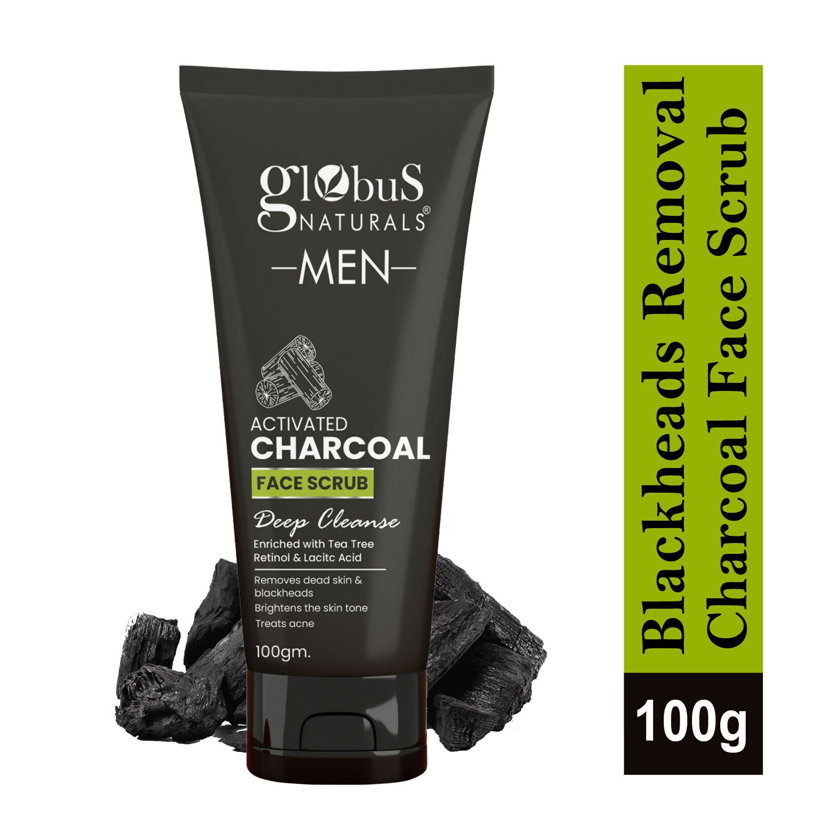 Globus Naturals Anti Pollution & Anti Acne Detox Charcoal Face Scrub for Men - 100 gm
