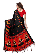 Vamika Black & Red Kalamkari With Jhalar Khadi Silk Saree