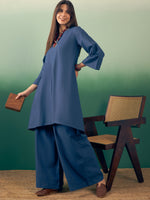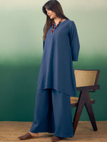 InWeave Midnight Blue Kurta Palazzo Set - Distacart
