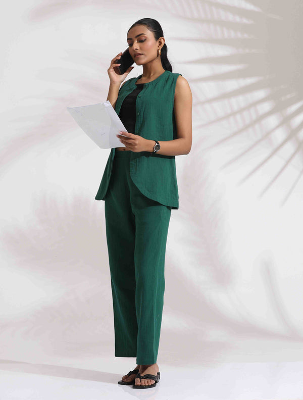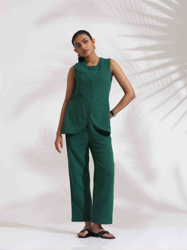 trueBrowns Green Cotton Co-ord Set Description Elevate your style with this green cotton top with green cotton flared pants , it's an ideal blend o...