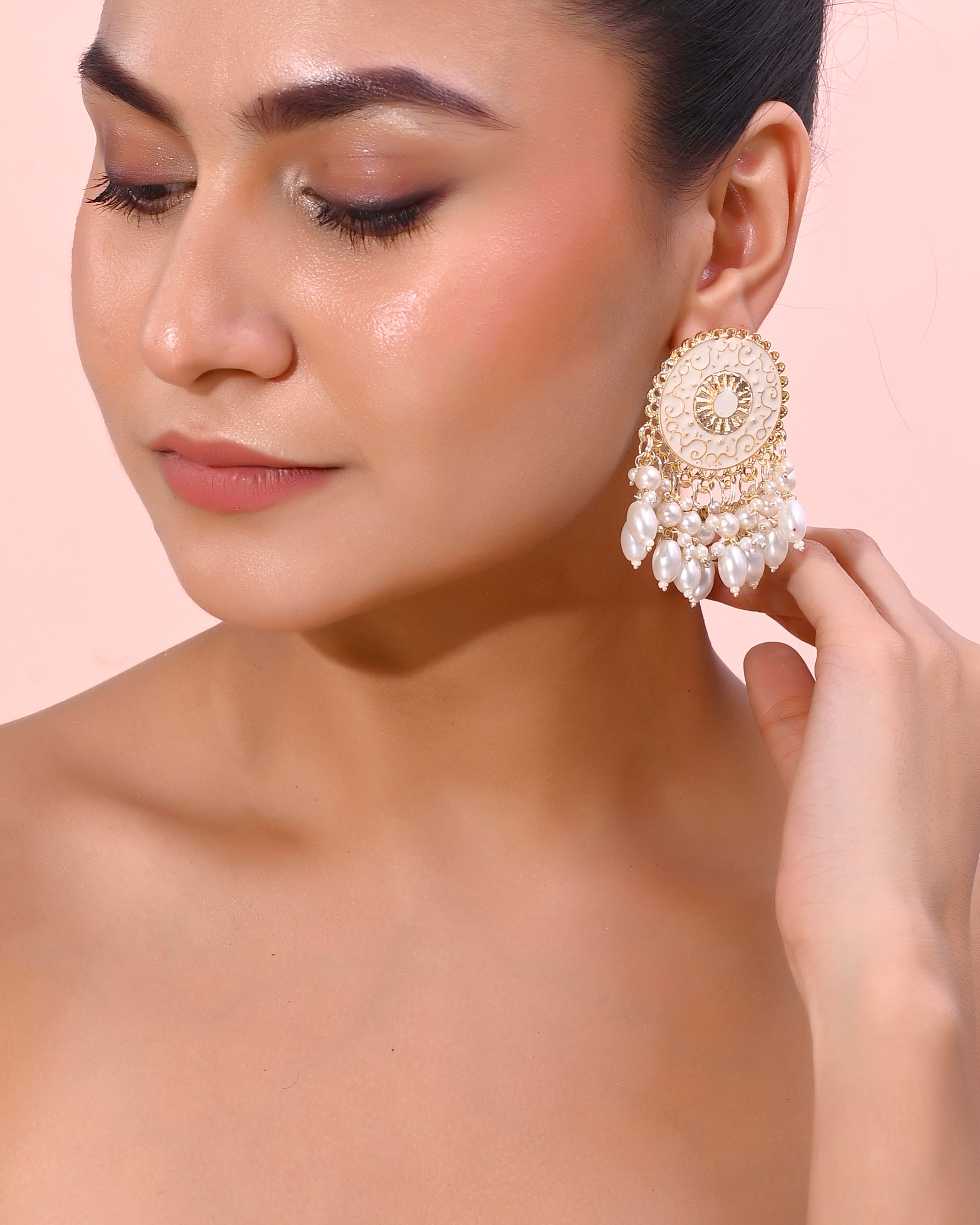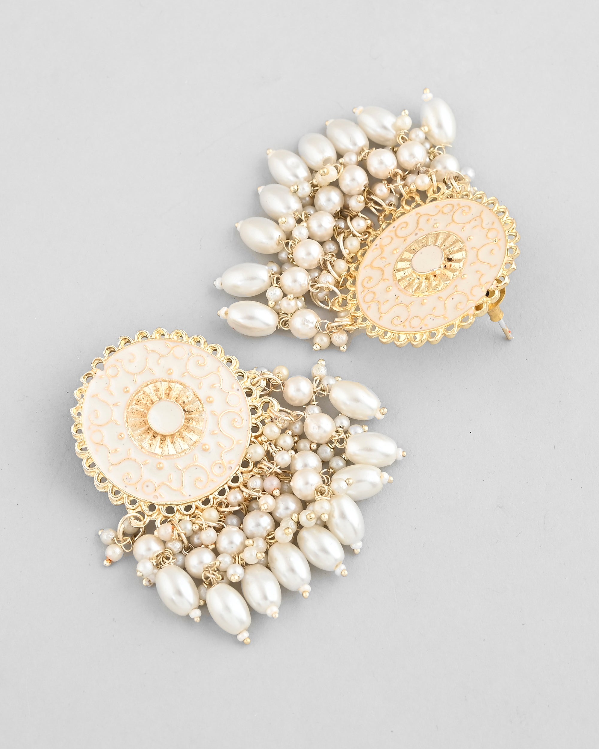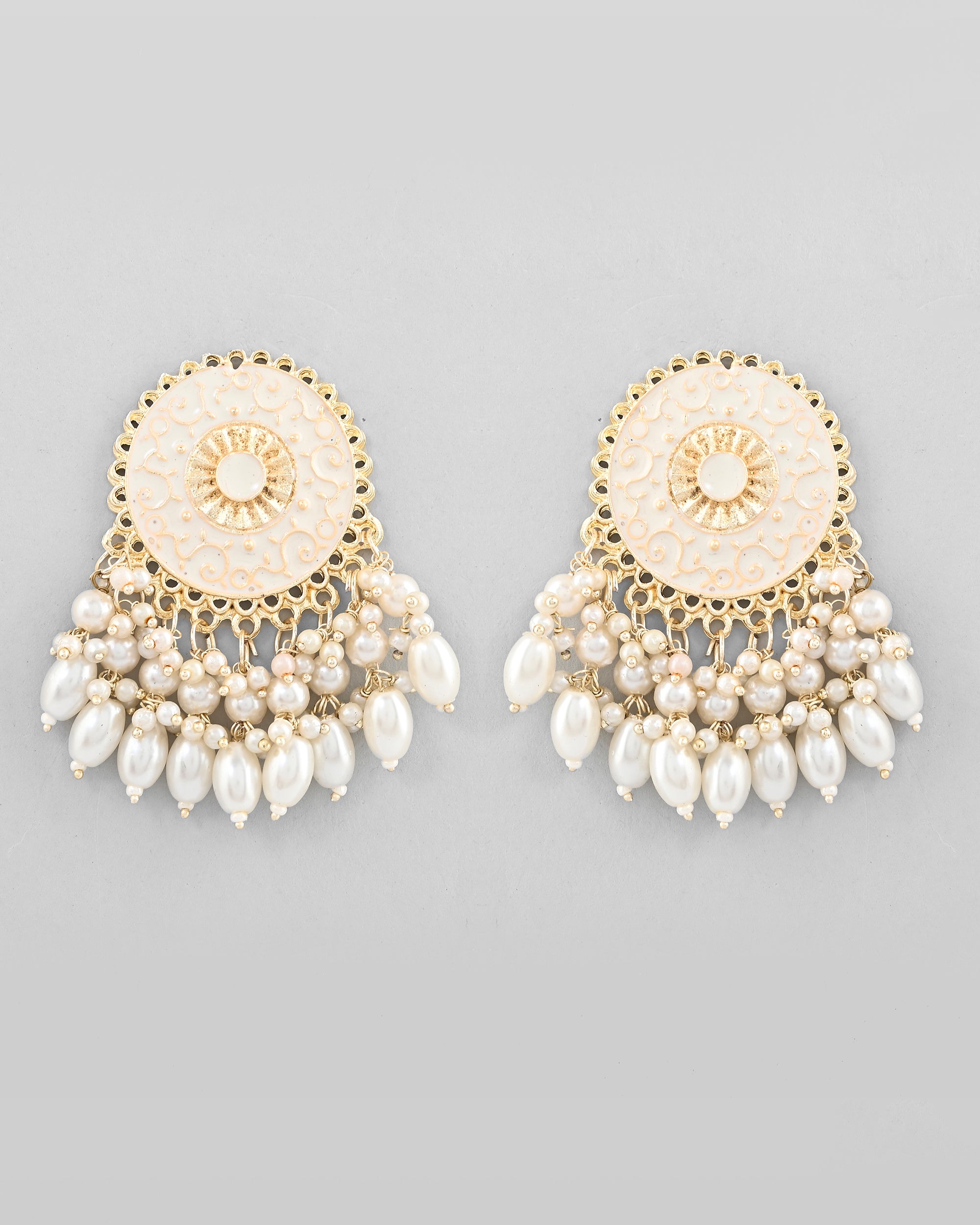 VOJ Gold-Polished White circular Earrings With Pearls - Distacart