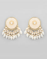 VOJ Gold-Polished White circular Earrings With Pearls