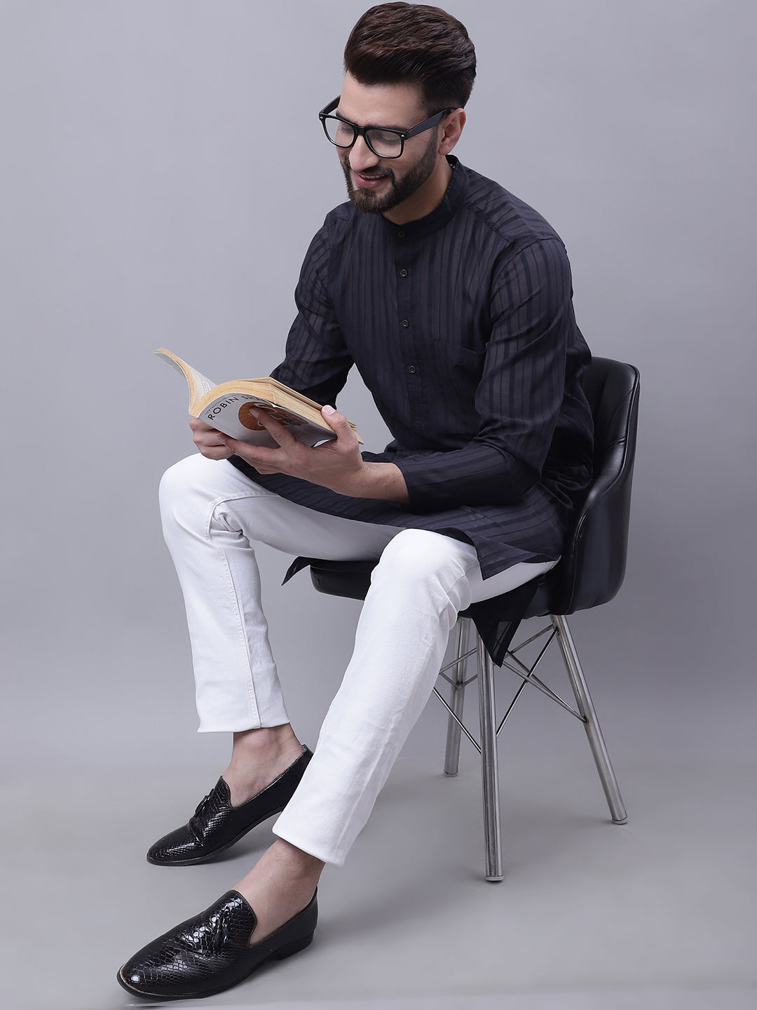 Even Apparels Black Pure Cotton Kurta With Band Collar About the product: Pure cotton kurta with band collar. Additional Information: Fabric: ...