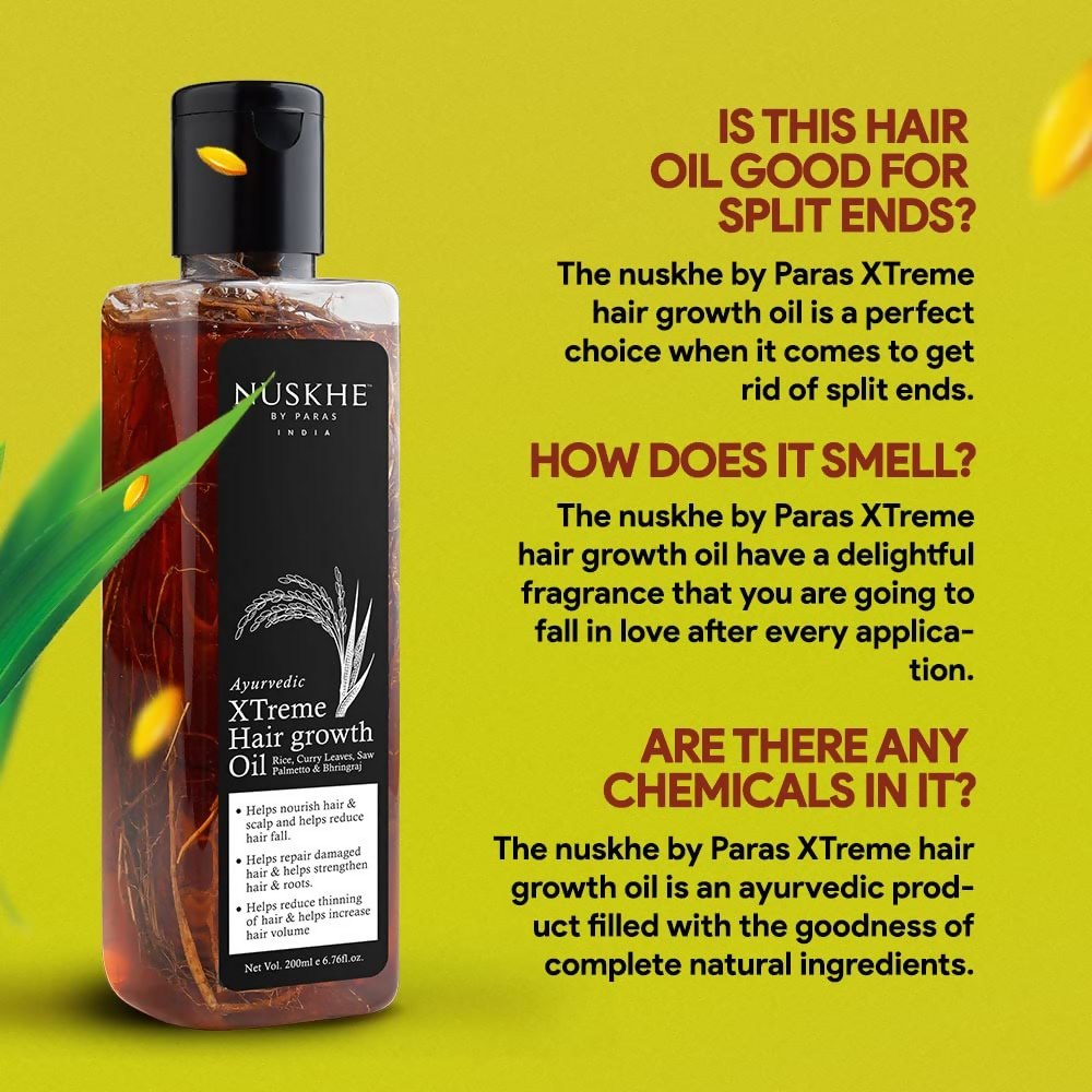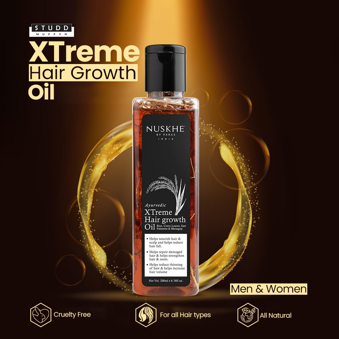 • Do you know good hair speaks louder than words? Then come on, baby, let's make this statement true by bringing back your shiny and lustrous hair. Try Nuskhe By Paras Xtreme Hair Growth Oil. It is a perfect choice of oil That will make your hair soft and smooth, that everyone will crave to touch.