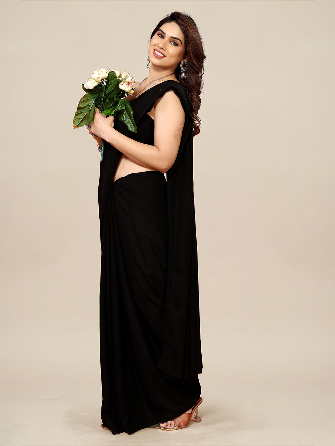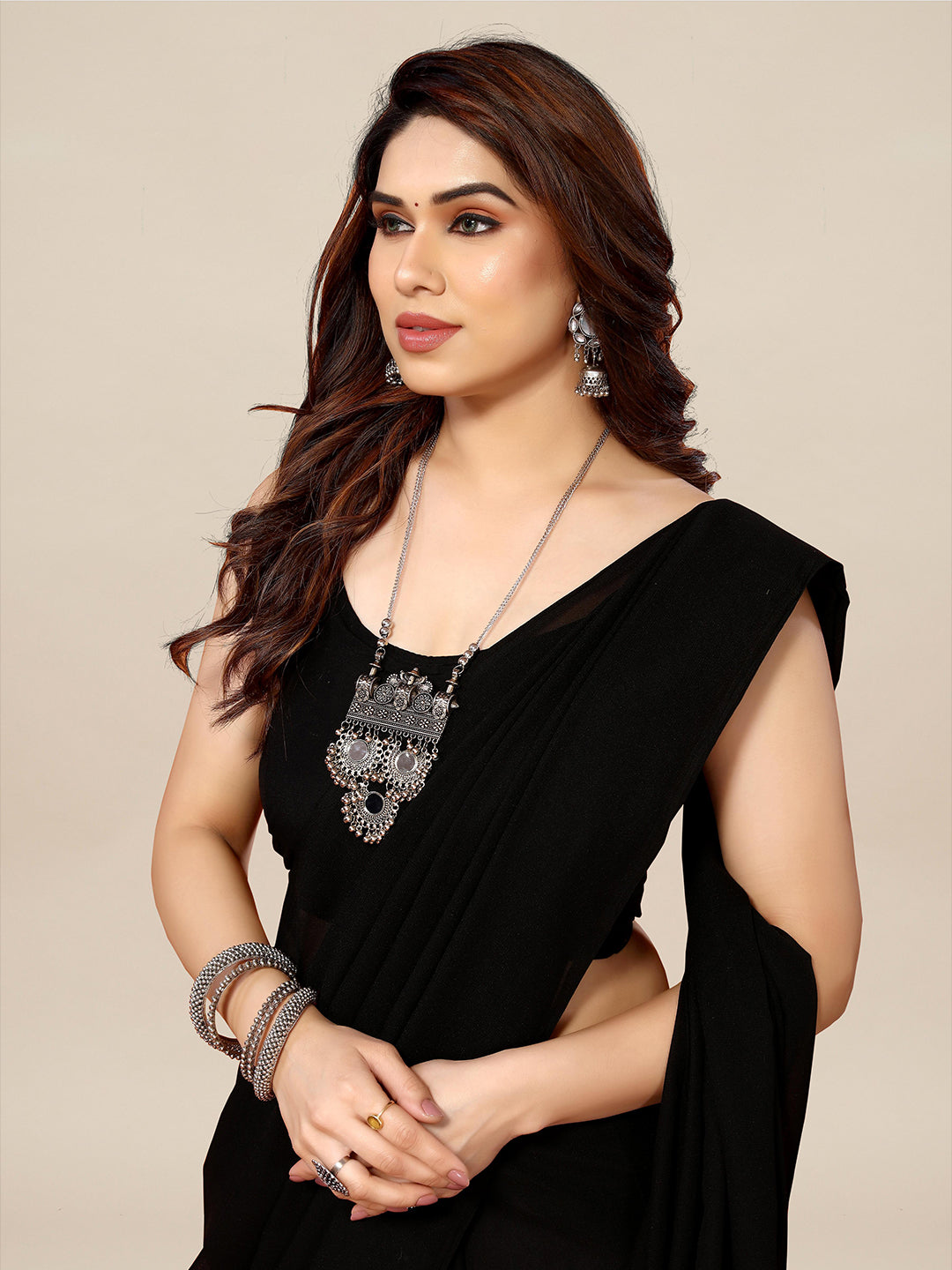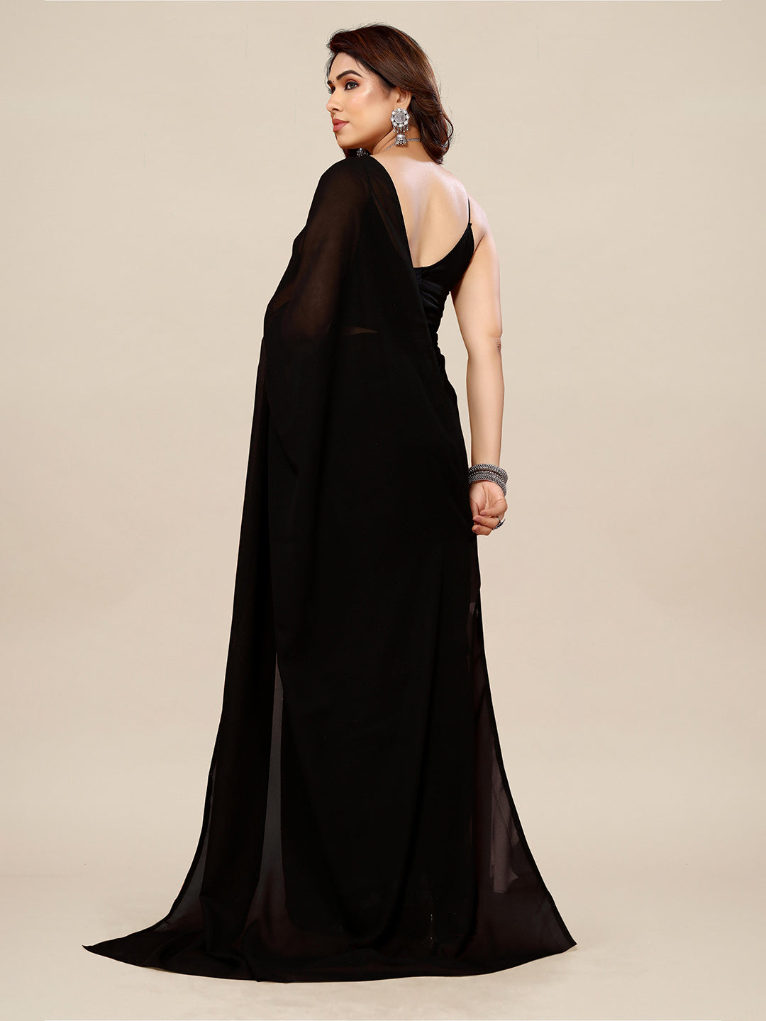Kalini Pure Georgette Saree Product Details Design Details Black saree Solid saree The saree comes with an unstitched blouse pieceThe blouse w...