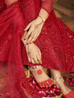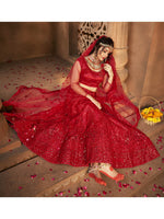 Myra Deep Red Heavy Embroidered Net Lehenga