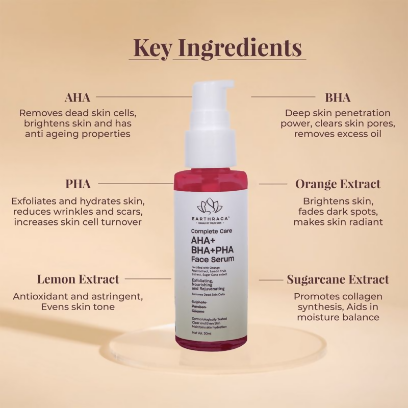 Earthraga Complete Care AHA+BHA+PHA SerumAbout The Product:The Earthraga Complete Care AHA+BHA+PHA serum is perfect for achieving clean and clear s...