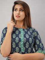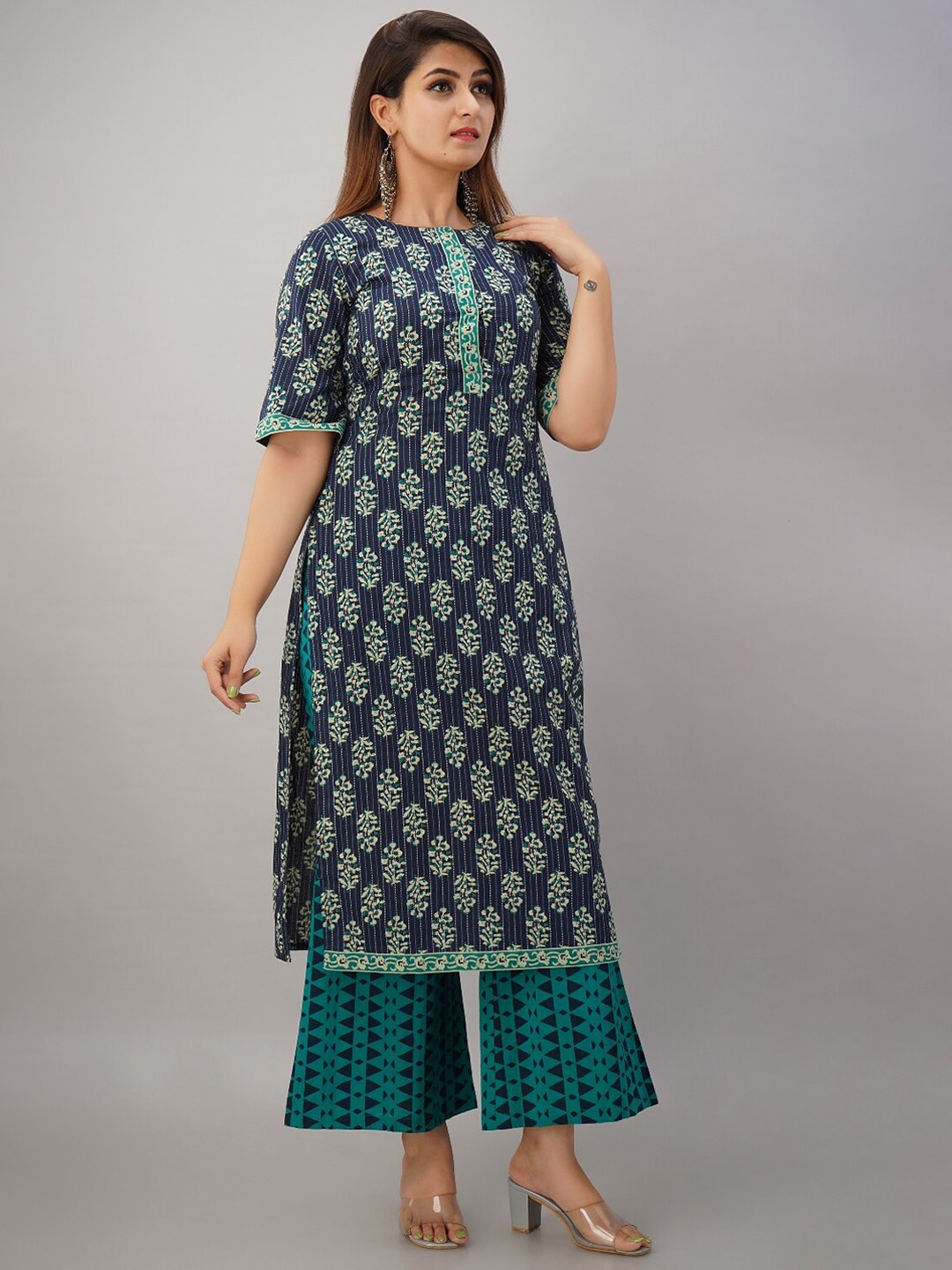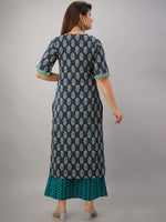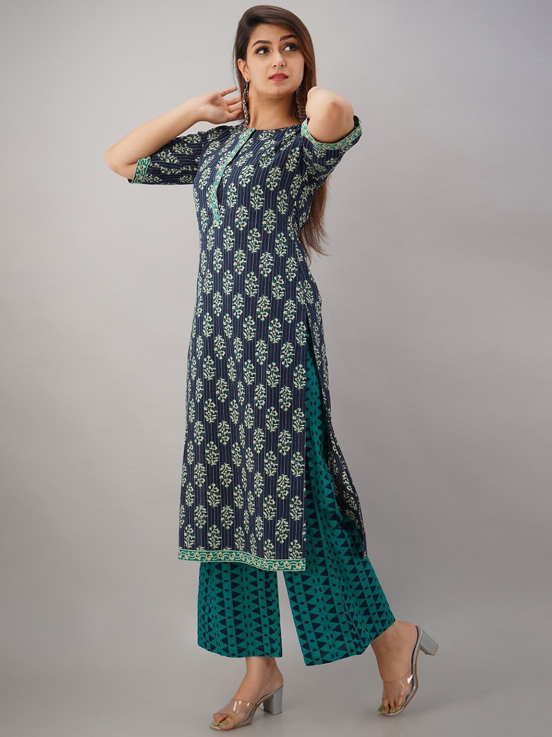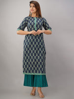 Turquoise blue printed Kurta with Palazzos
