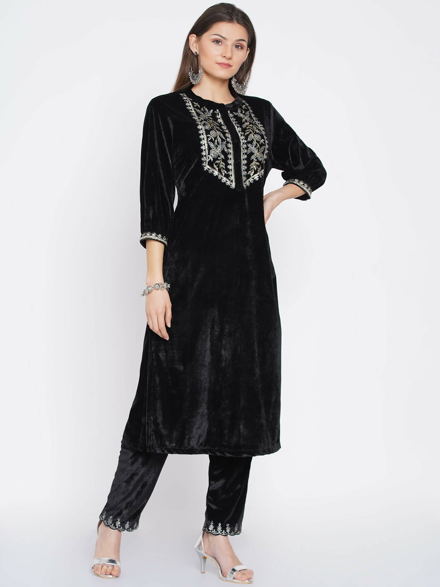 Women Republic Black Velvet Embroidered Kurta With Pants - Distacart