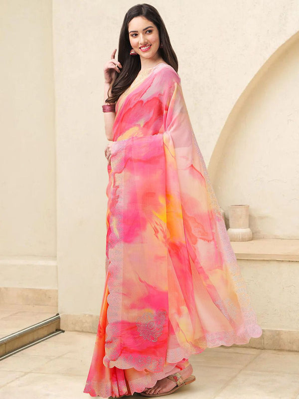 • Tie and dye dyed saree with embellished border