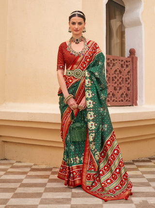 Monjolika Fashion Dark Green Colour Sigma Silk Patola Printed Saree With Blouse