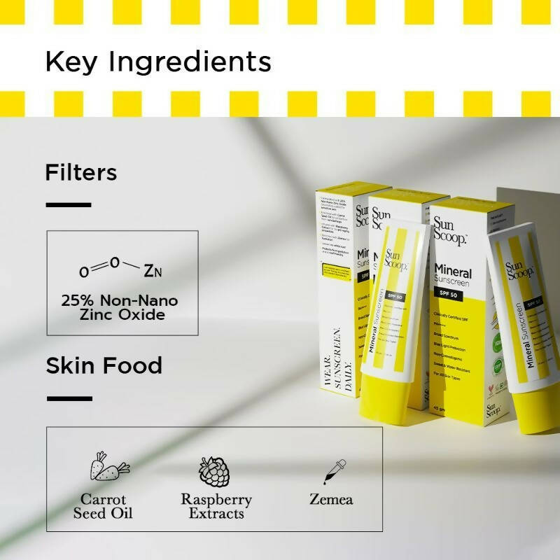 Sun Scoop Mineral Sunscreen SPF 50About the Product:Sun Scoop Mineral SPF 50, PA++++ Sunscreen is a must-have mineral sunscreen that likes to sit o...