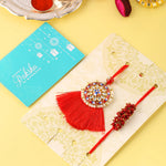 • This Raksha Bandhan brings a smile to brother and sister in law's faces by tieing this beautiful rakhi set on their wrist.