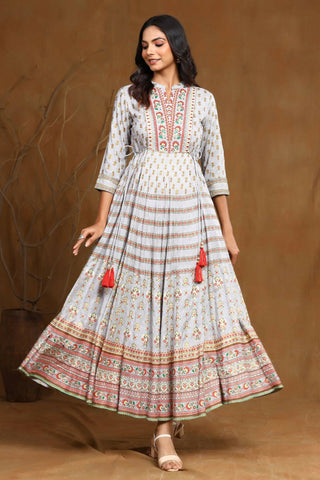 Juniper Women Grey Cotton Moss Embroidered A-Line Tunic