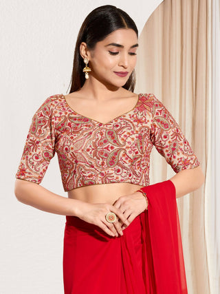 Joban Fashion Tissue Silk Red & Silver Embroidery Saree