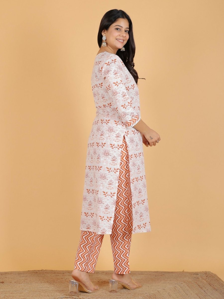 Aramya White Soft Cotton Floral Print Straight Kurta Set for Women