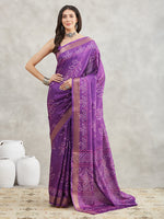 Janasya Purple Silk Blend Bandhani Printed Saree