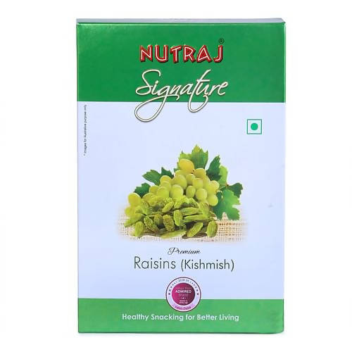 Nutraj Signature Premium Raisins (Kishmish)Nutraj presents this pack of Signature Premium raisins which makes for a healthy snacking option during ...