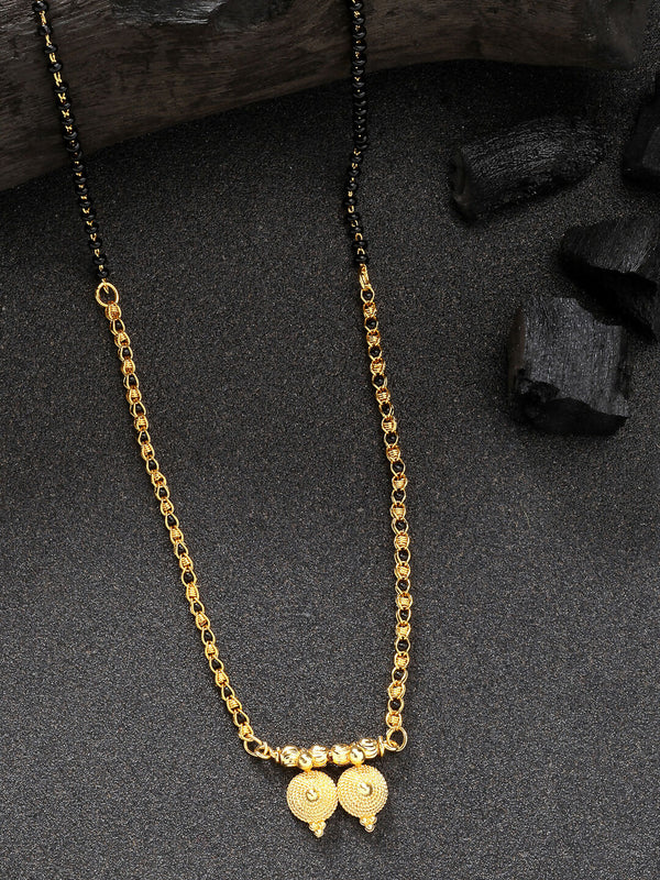 NVR Women's Gold-Polished Black Beaded Mangalsutra