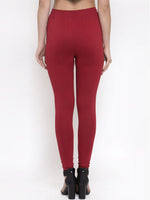 TAG 7 Women Pack Of 2 Solid Churidar-Length Leggings Product Details Pack of two solid churidar-length leggings in back and maroon, each has an...