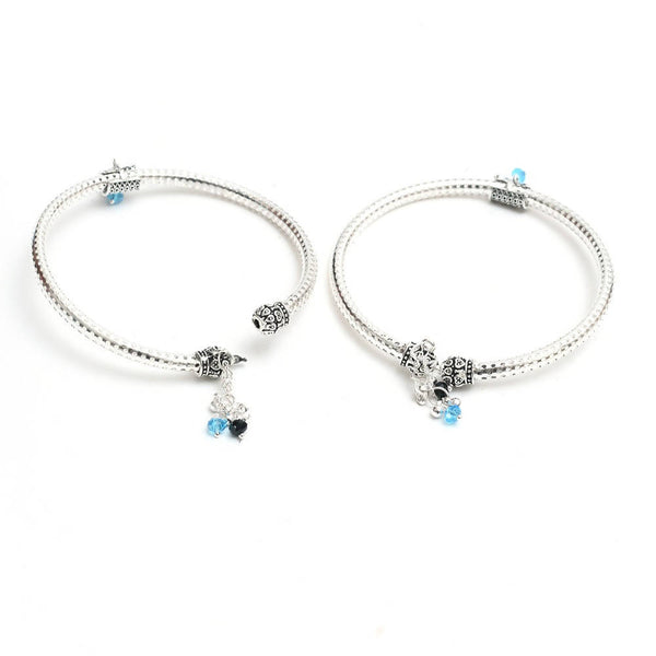 Mominos Fashion Kamal Johar Oxidised Silver Kadiyam Style Anklets