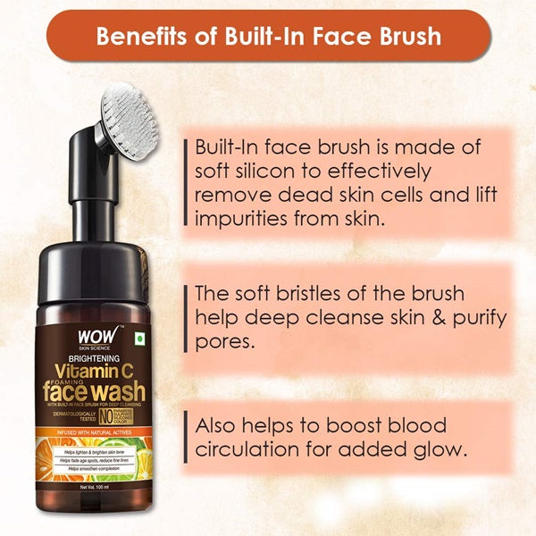 Wow Skin Science Vitamin C & Niacinamide Brightening Foaming Face Wash- (With Built-in Face Brush): 150 ml Key Features : It cleanses the skin...