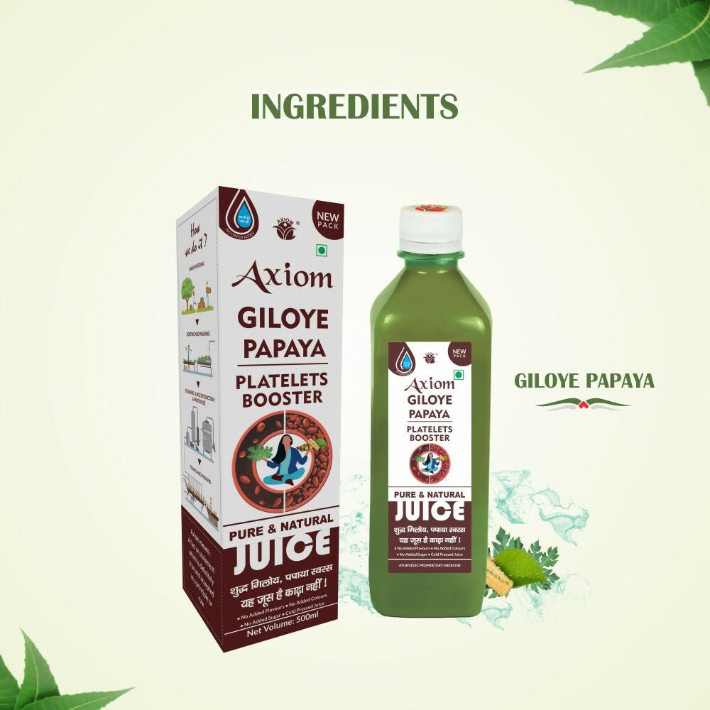 Axiom Ayurveda Giloye Papaya JuiceIngredients:Papaya JuiceHow to use:As suggested by the expert. Legal Disclaimer: Statements regarding dietary sup...