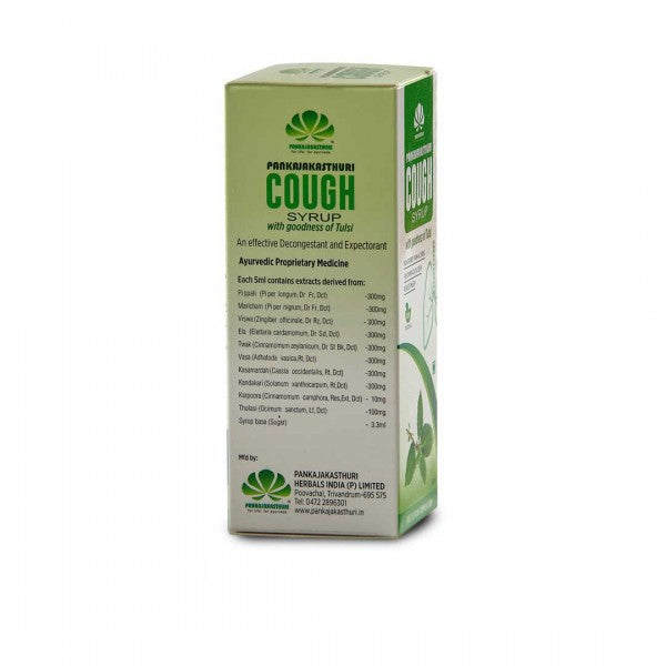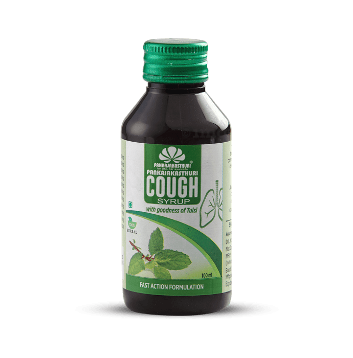 Pankajakasthuri Cough Syrup with Tulsi: 100 ml Legal Disclaimer: Statements regarding dietary supplements have not been evaluated by the FDA and ar...