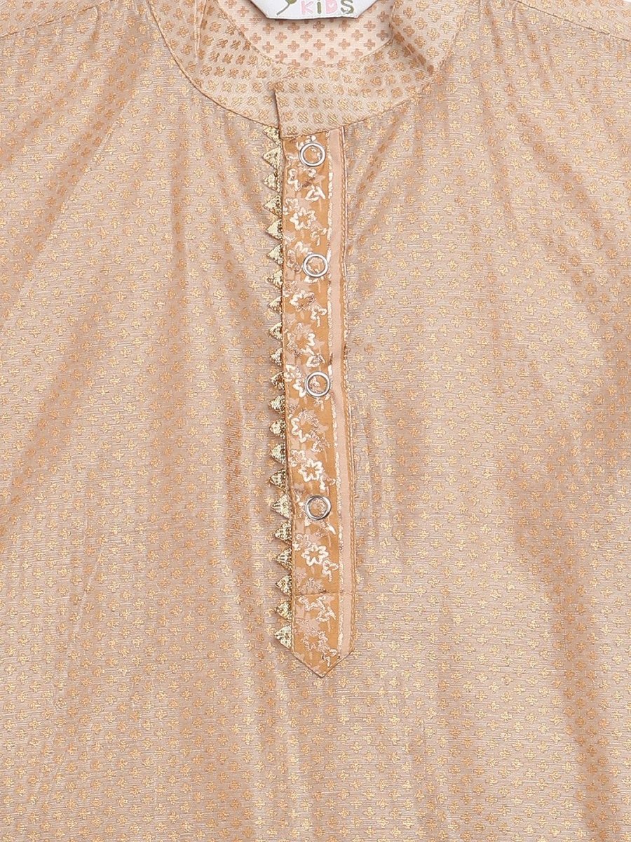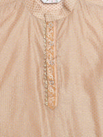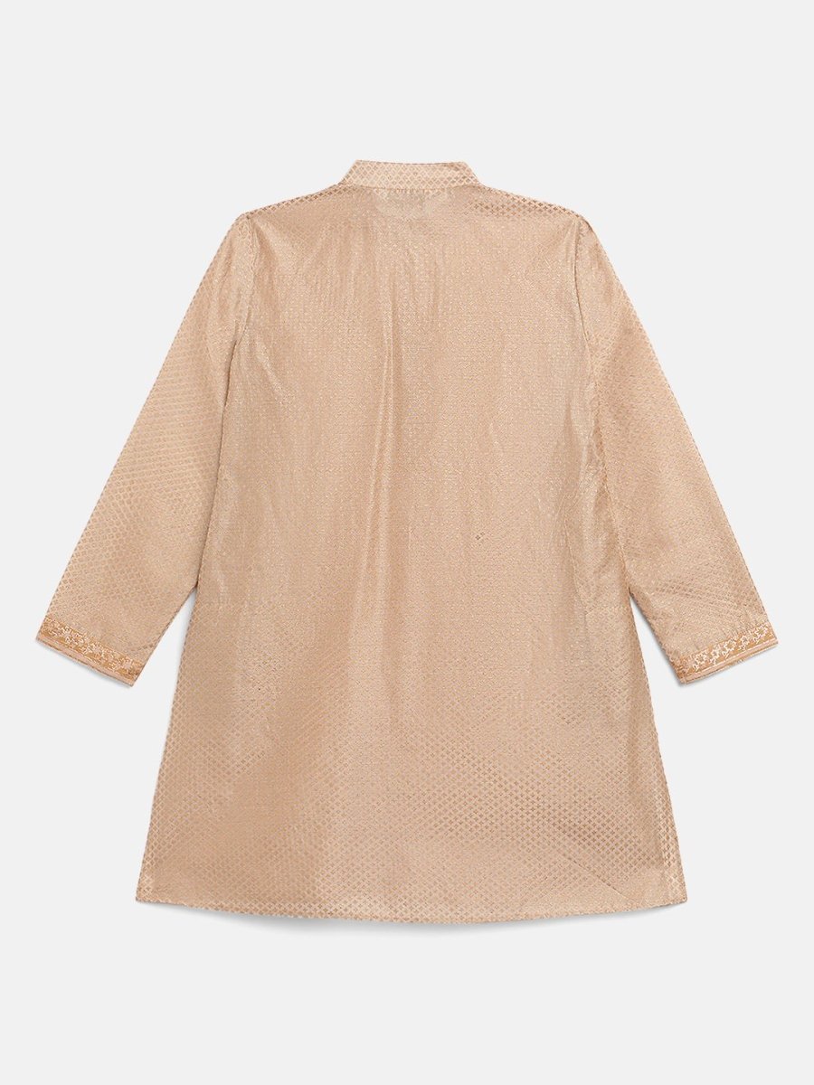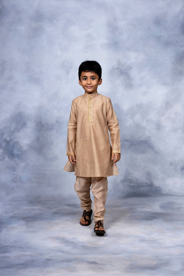 Ahalyaa Boys Beige Poly Silk Gold Printed Kids Kurta Churidar Set