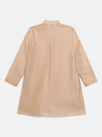 Ahalyaa Boys Beige Poly Silk Gold Printed Kids Kurta Churidar Set - 2-3Y