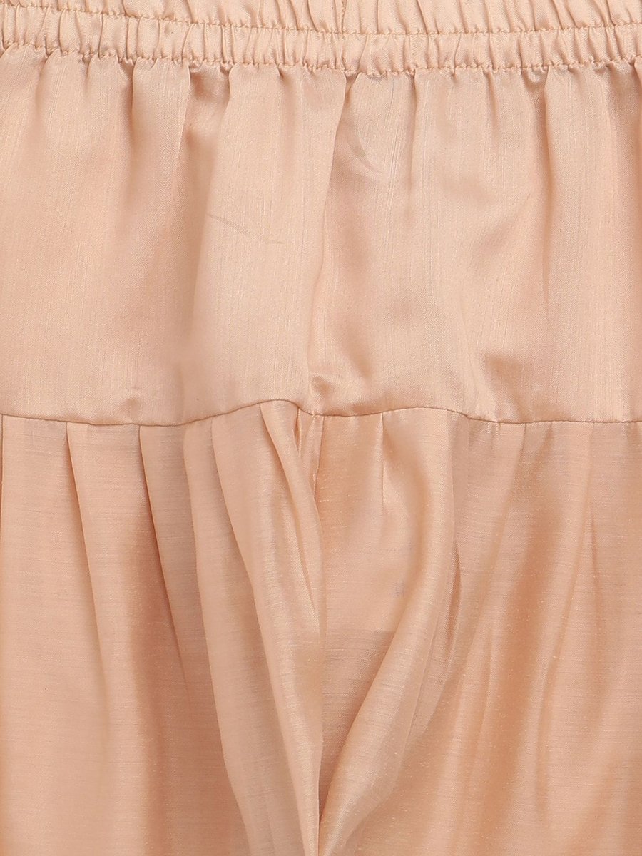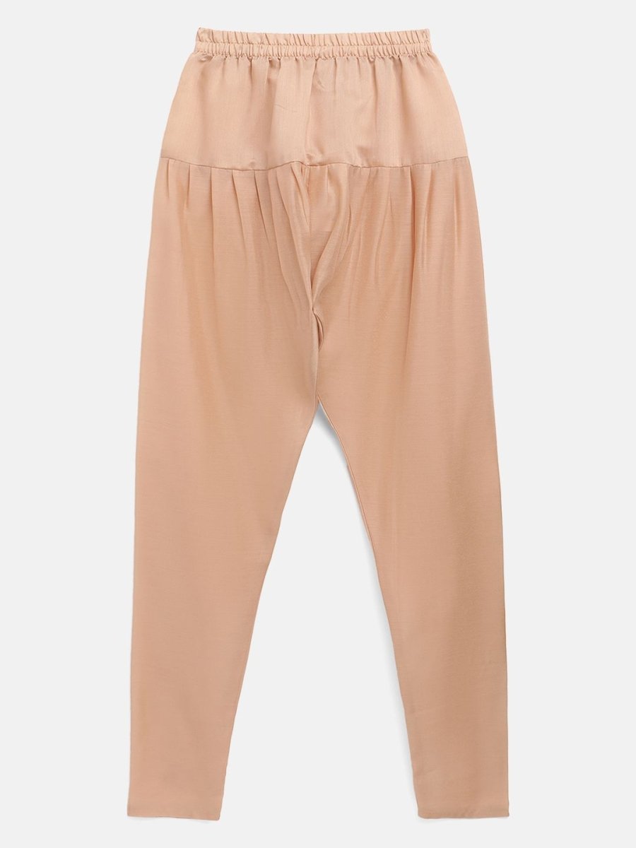 Ahalyaa Boys Beige Poly Silk Gold Printed Kids Kurta Churidar SetPut forward your son's best traditional look by choosing this kurta Churidar set f...