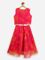 Ahalyaa Pink Organza Digital Print Kids Lehenga Choli For Girls - 2-3Y