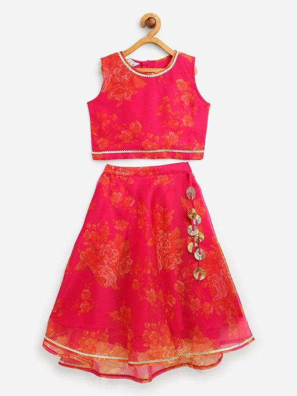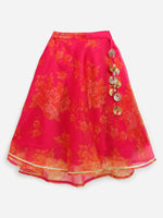 Ahalyaa Pink Organza Digital Print Kids Lehenga Choli For Girls