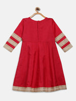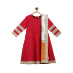 Ahalyaa Red Poly Silk Anarkali Kids Kurta With Dupatta Set For Girls