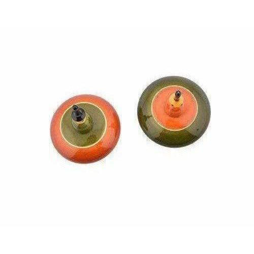 It is handmade and handcrafted from wood of native Ankudu. A top is a toy designed to be spun rapidly on the ground, the motion of which causes it to remain precisely balanced on its tip because of inertia. Such toys have existed since antiquity. Tops were manufactured of wood. All our toys are child-safe, made with natural dyes, with no sharp edges. Thick decoration of dye is mixed with lac to give fine finish. The use of natural resources ensures that our eco-friendly range of products also helps conserve the environment!