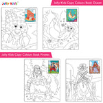 • Jolly Kids Copy Colouring books contains as many as 8 colouring books for little artists. There are 8 variety of themes – Animals, Flowers, Dinosaurs, Mermaid, Ocean, Pirates, Princess & Unicorn. Each book contains 18 pages to keep you young one occupied in a fun filled activity & learning. It also contains large pictures and high-quality coloring sheets which lets your kid enjoy his coloring activity. Coloring books are known to provide a lot of benefits to young children. Most of all it promotes creativity, helps kids develop their motor skills and even improves concentration. These books have large colouring size paper with 1 picture on each page and every picture comes with a color guide for kids. By following the coloring instructions, kids will learn to recognize different color and learn their names. It teaches them to follow instructions and behave in a particular way. Kids do not have a completely developed motor skill, and hence, big pictures allow them more space. And when they finish coloring a large picture, it gives their confidence a much-needed boost. They feel happy and it promotes a sense of self-confidence. It also assists in developing eye-hand coordination. Thus, preparing them for a smooth schooling experience.