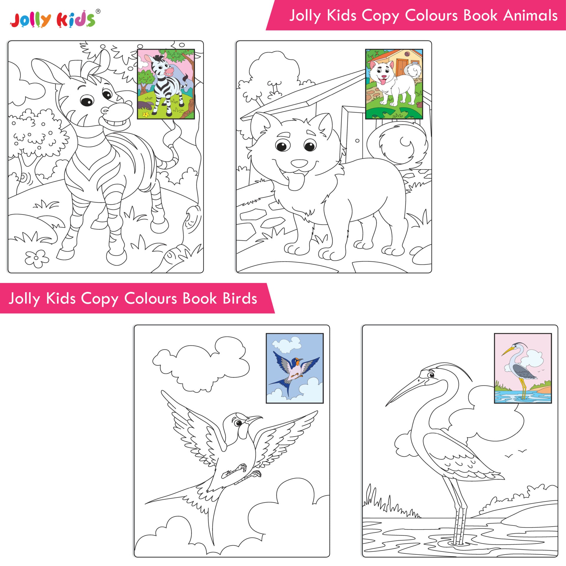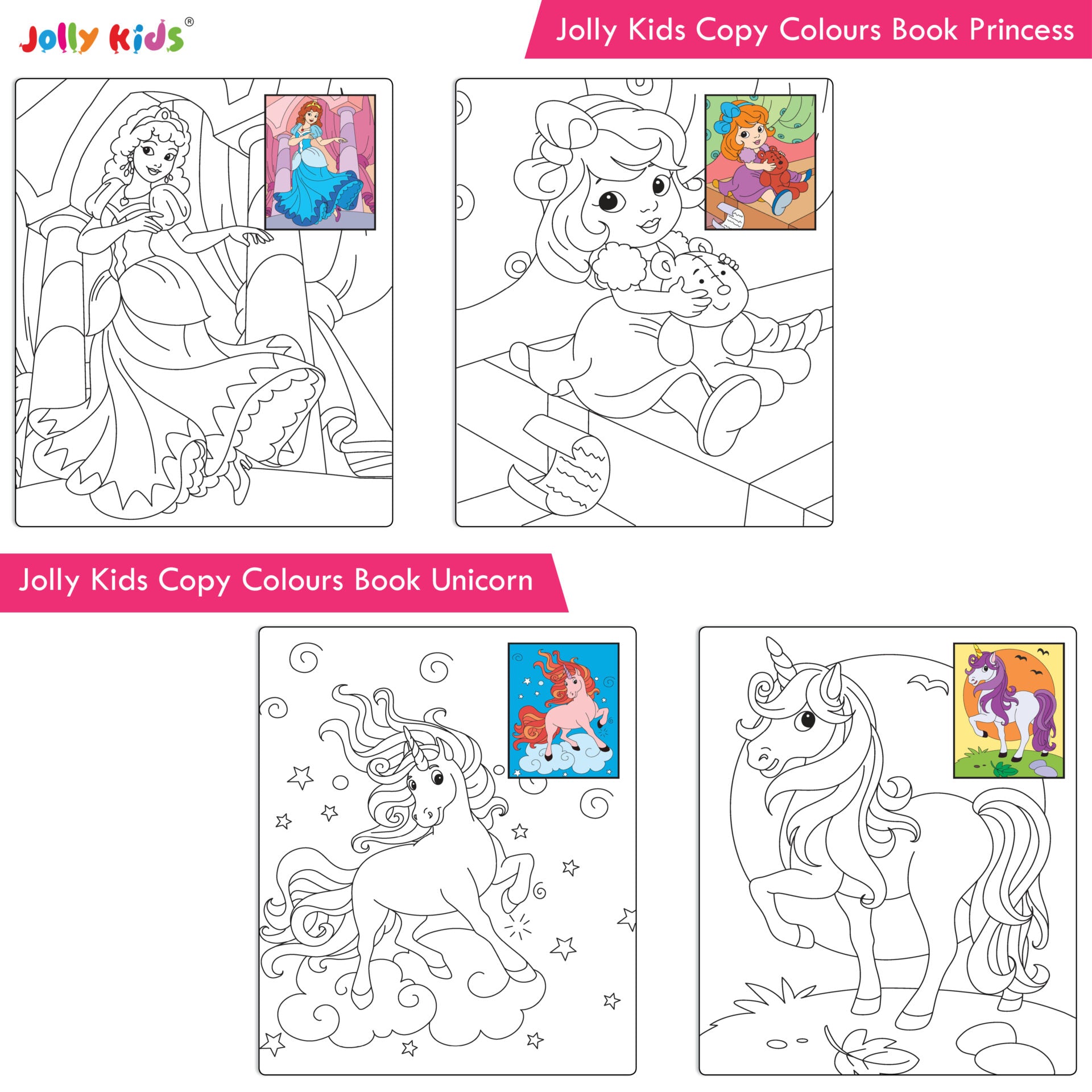 Jolly Kids Copy Colour Books Set of 8| Colouring Books: Animals, Flowers, Dinosaurs, Mermaid, Ocean, Pirates, Princess & Unicorn| Ages 3-10 years - Distacart