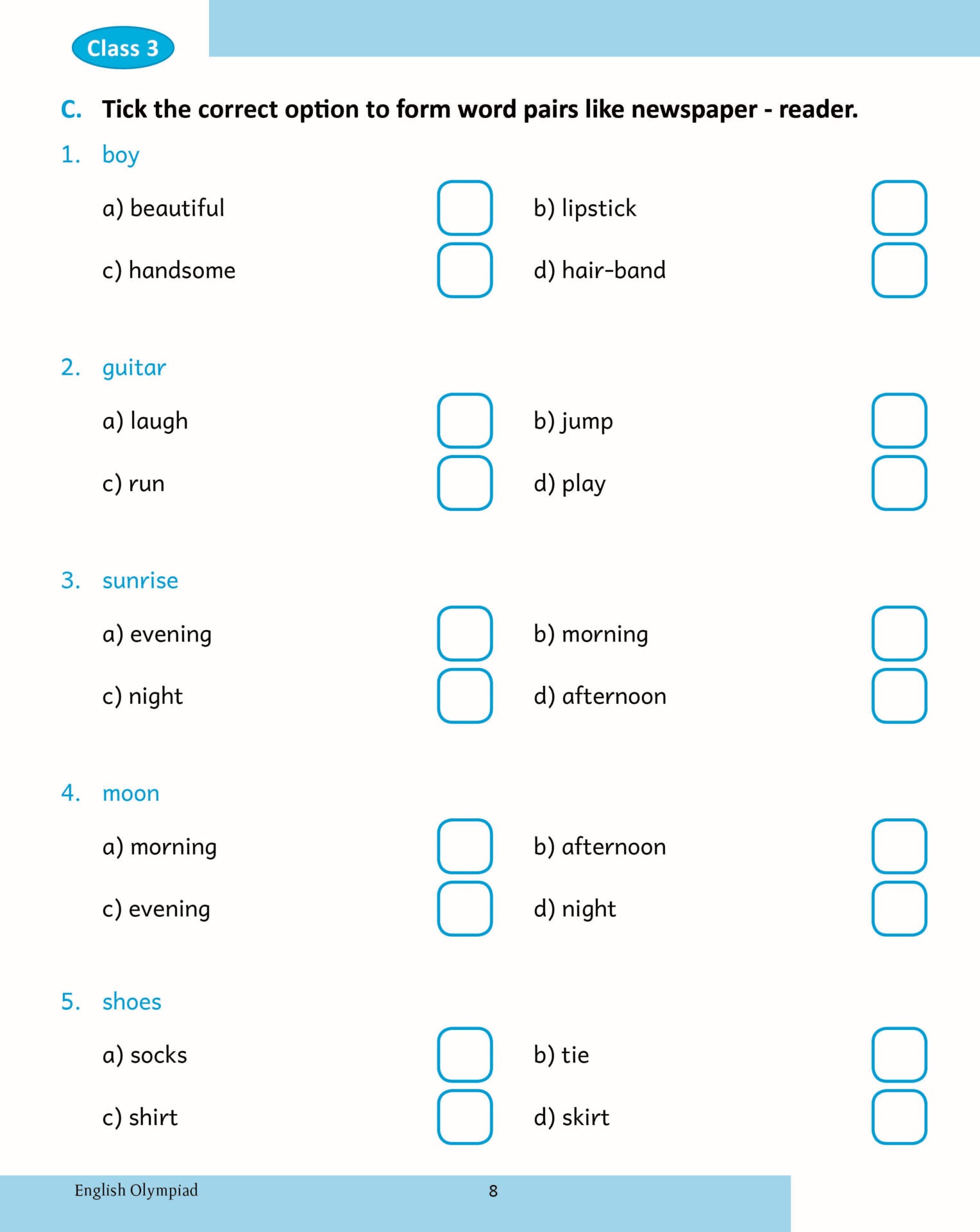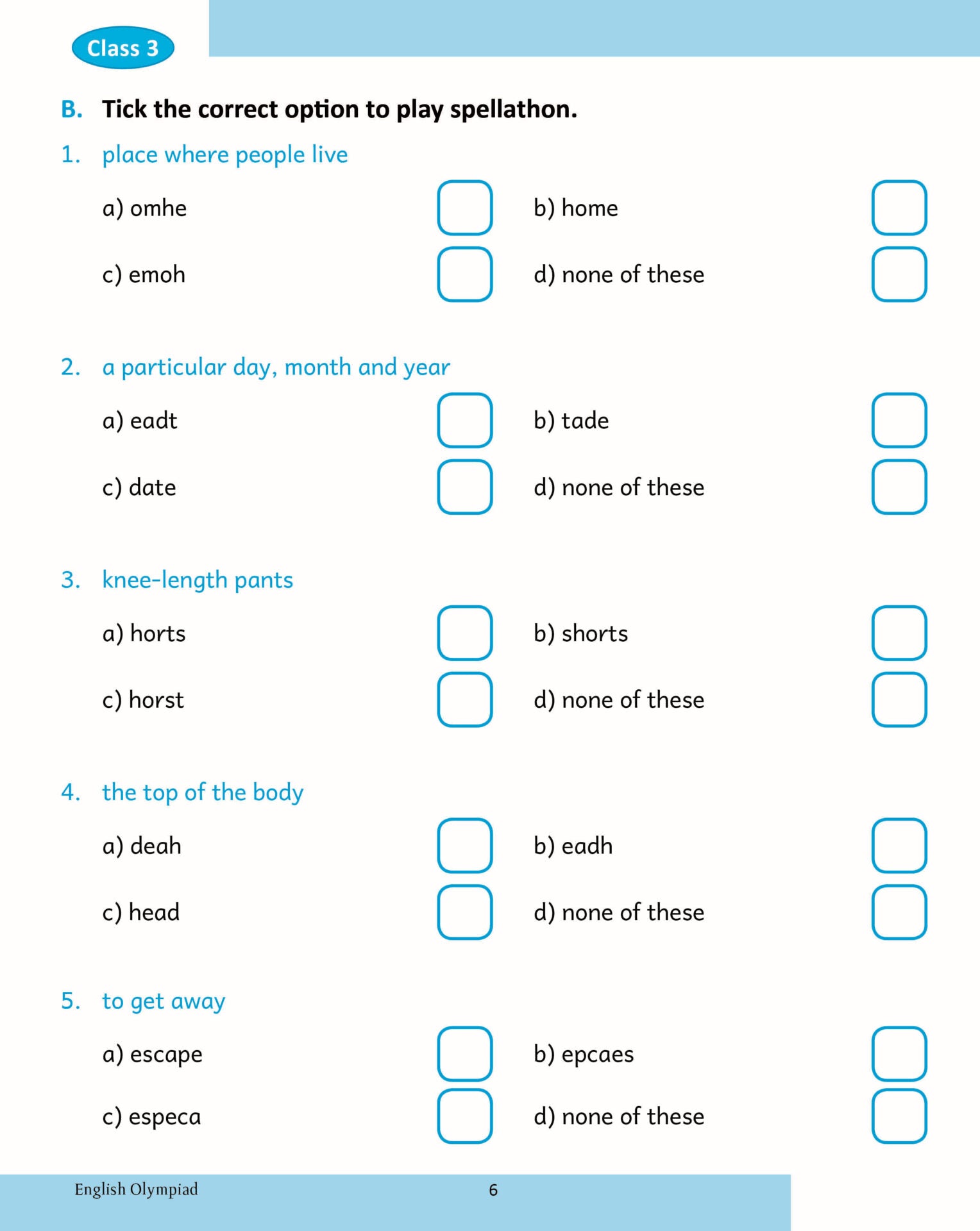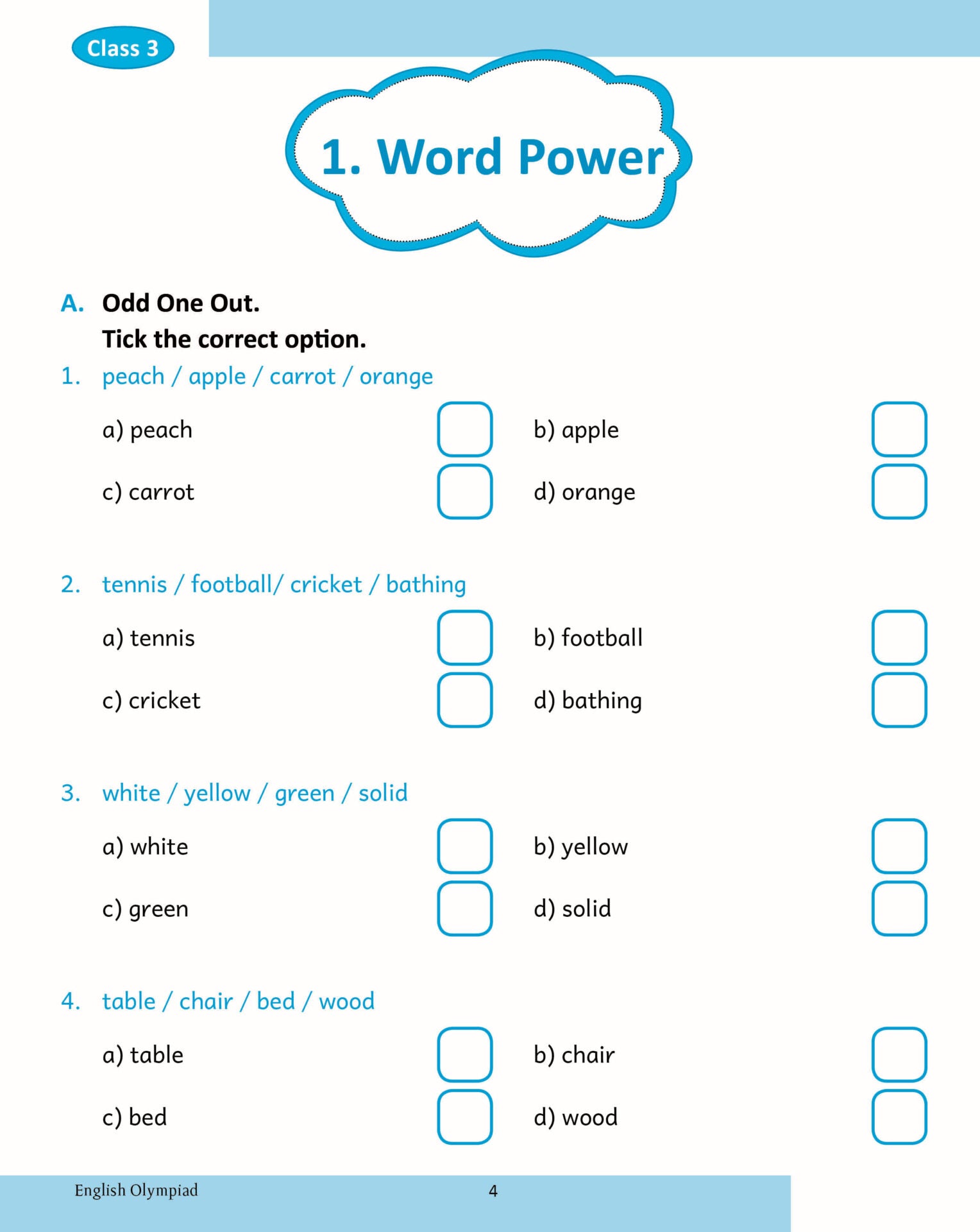 • Olympiad English Series caters to improving the child's listening, speaking, reading and writing skills. Olympiad English series aims at motivating the students to strive for better performance in English. All questions are in MCQ format that tests student's observation, analytical, problem solving and higher-order thinking skills.