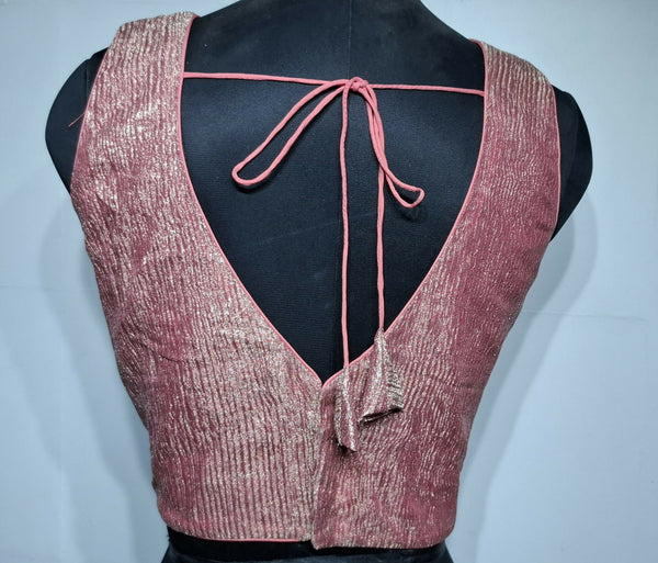 Kia Fashions Coral Pink Crush Tissue Self Design Readymade BlouseCrush tissue V neck back open blouse with option of 10" sleeves38" (alterable from...