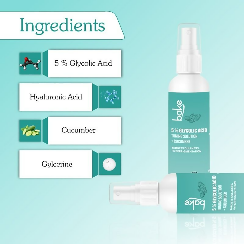 Bake 5% Glycolic Acid Toning SolutionAbout the Product:Step into a world of radiant skin with our 5% Glycolic Acid Toning Solution with Cucumber, a...