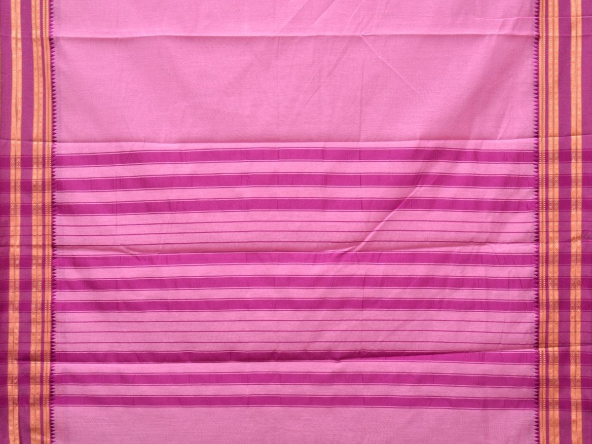 Baby Pink and Pink Bamboo Cotton Plain Saree with Strips Pallu Design No Blouse. This is a blend of bamboo and cotton fibers, they have characteristics of both bamboo and cotton combined into one fabric. We Advise Gentle Handwash for Fabric Care. This Saree has No Blouse.