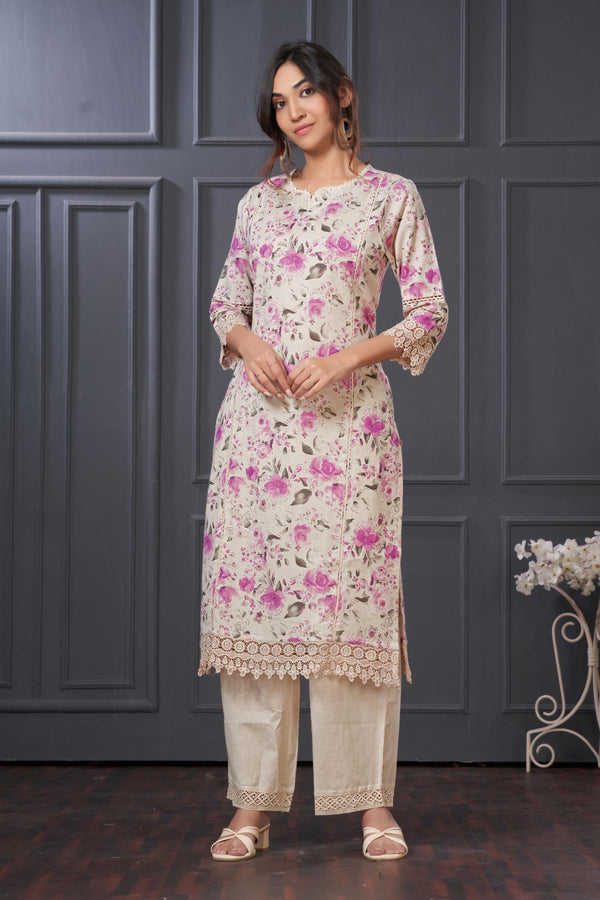 BulBul Hazel Purple Floral Printed Cotton Kurta Set