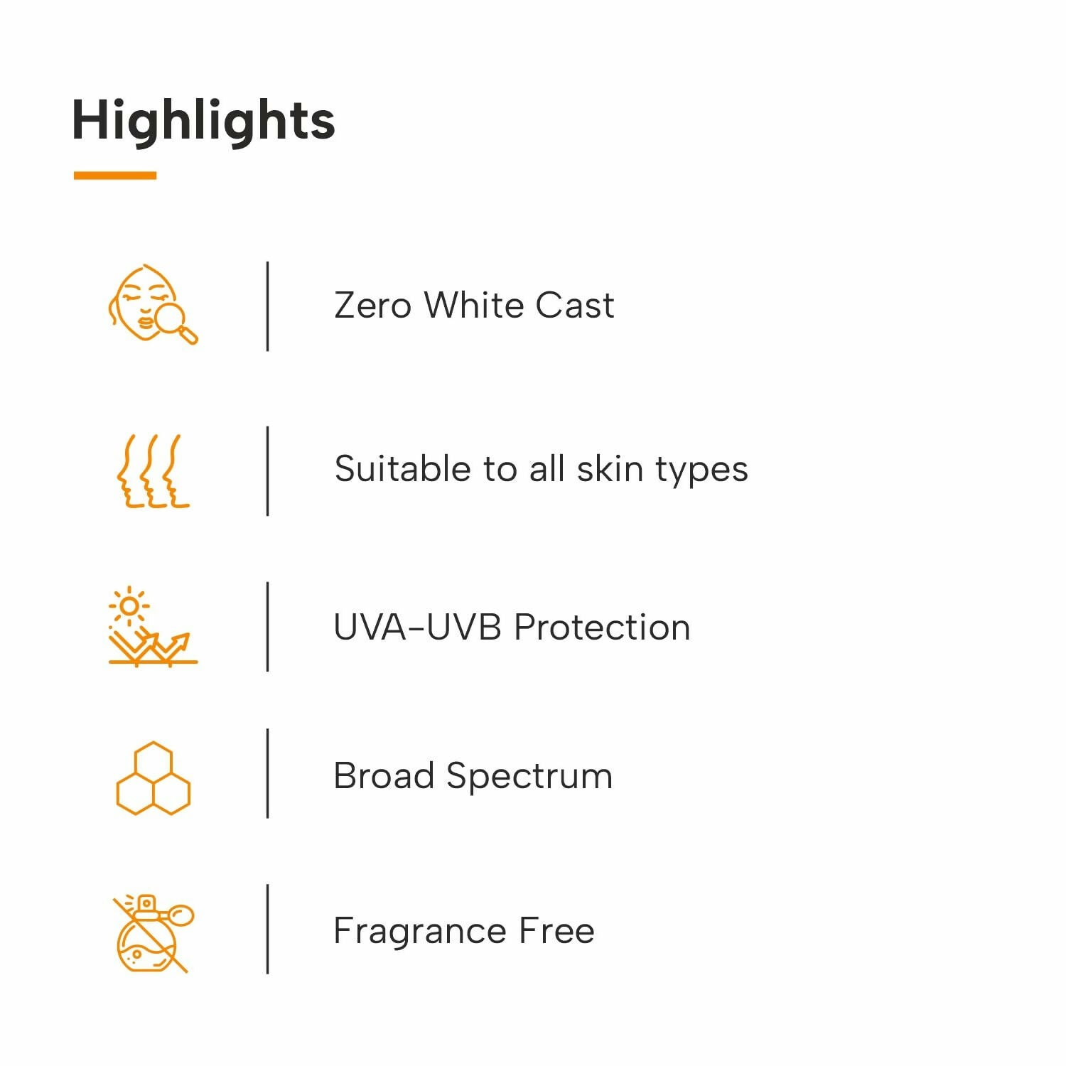 • PROTECT+ FORMULA: This multivitamin sunscreen if free from toxins, fragrance and offers a broad spectrum of SPF 50 PA+++ for protection against UVA & UVB induced radiations.