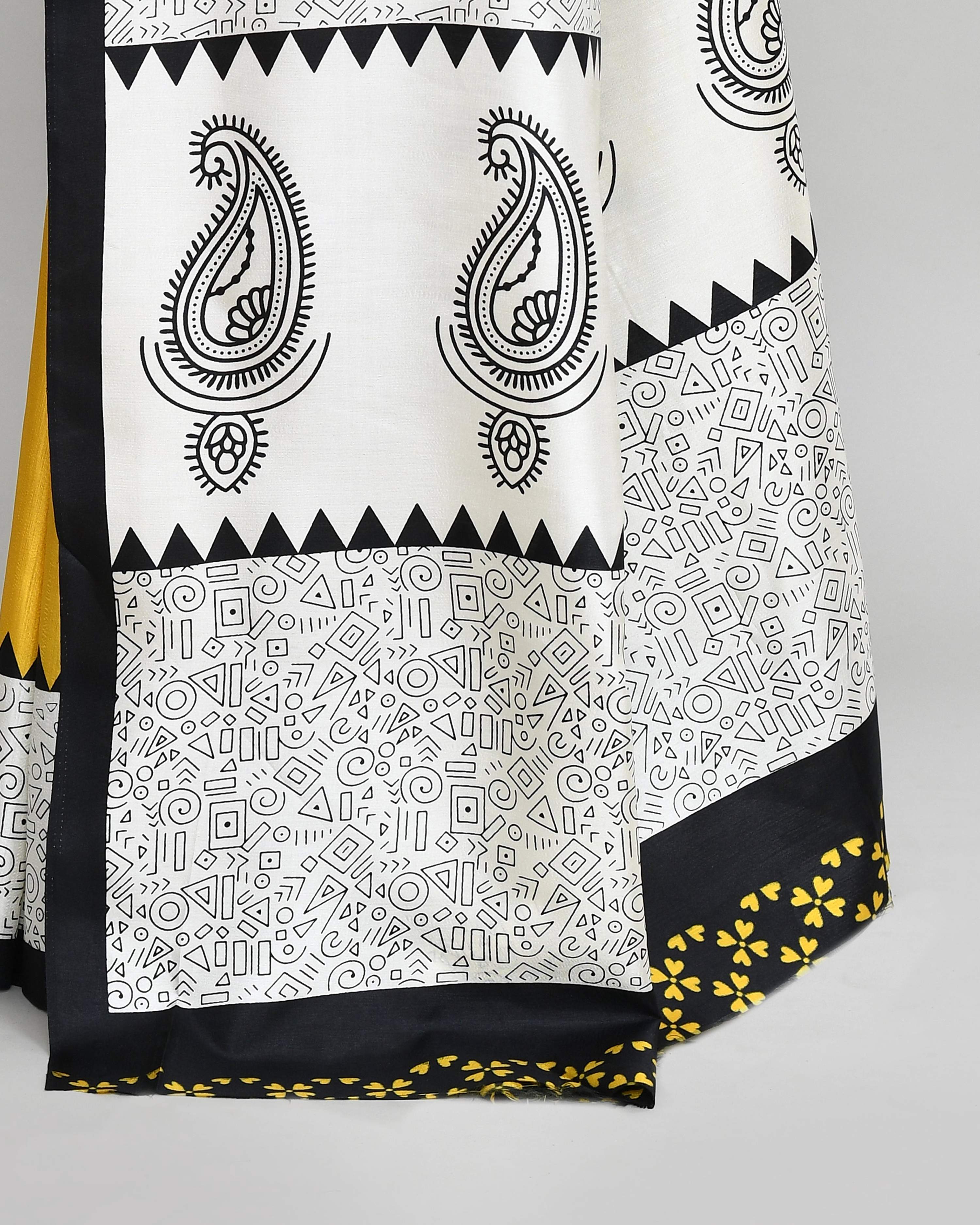Piyari Fashion PIyari Fashion Golden Printed Saree With Blouse