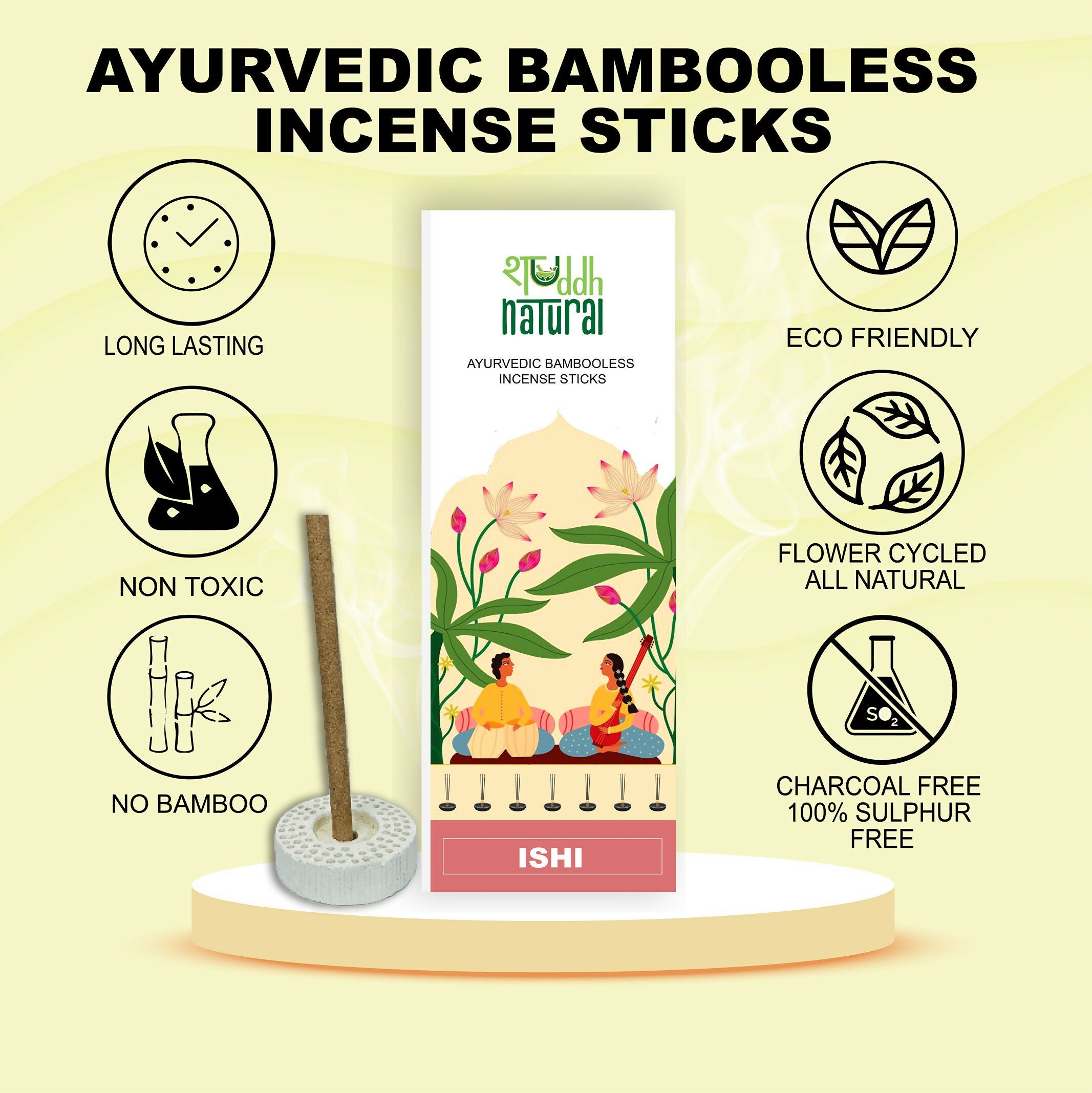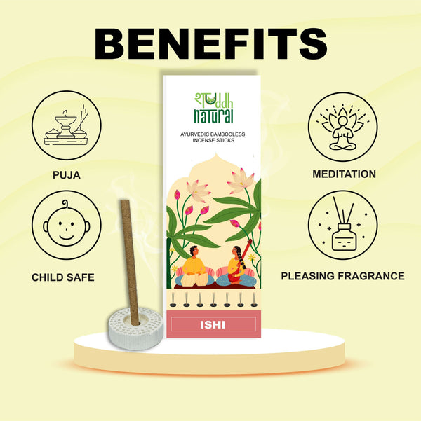 ISHI, meaning "Goddess Durga" in Sanskrit, enhances traditional Vedic puja rituals. Our Hand-rolled, ultra-luxury incense sticks made with natural Ayurveda-based herbs cleanse and purify the air, thus creating a calming atmosphere, and help connect with the divine. Choose from our unique range of best agarbatti, dhoop agarbatti, long lasting fragrance agarbatti, best fragrance agarbatti, prayer agarbatti,